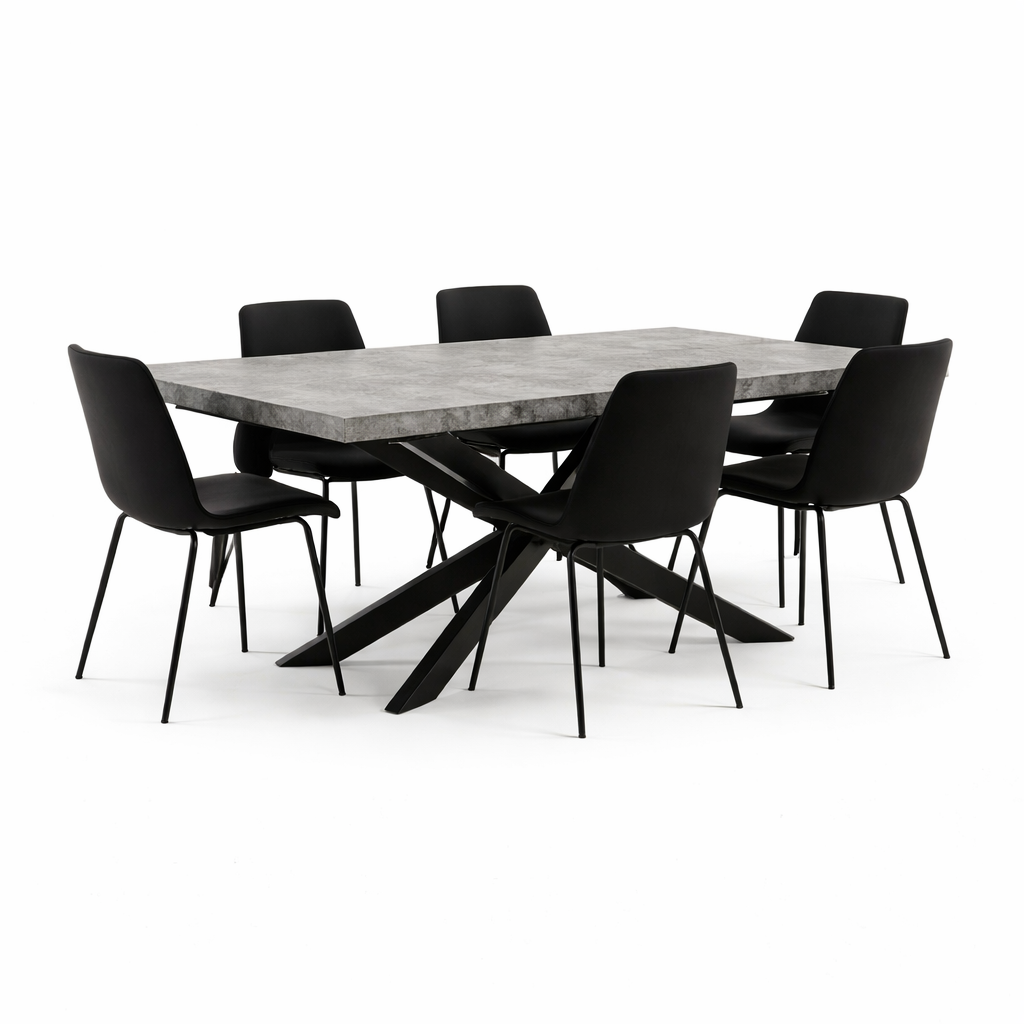 פינת אוכל מלבנית דמוי בטון דגם ספיידר + 6 כסאות – 10 סועדים