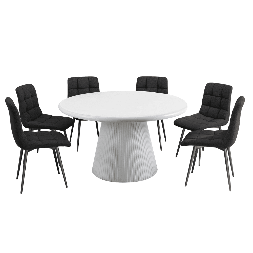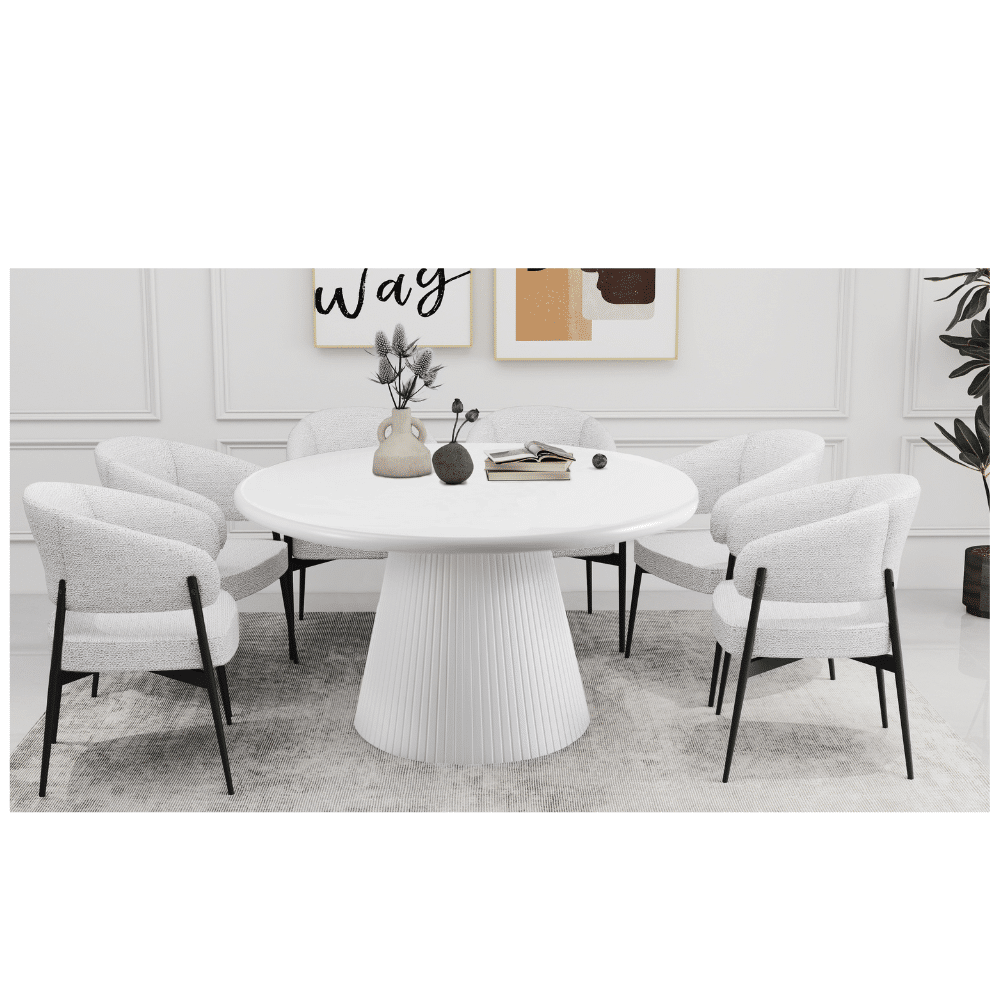 פינת אוכל עגולה דגם ראונדי בצבע לבן + 6 כסאות