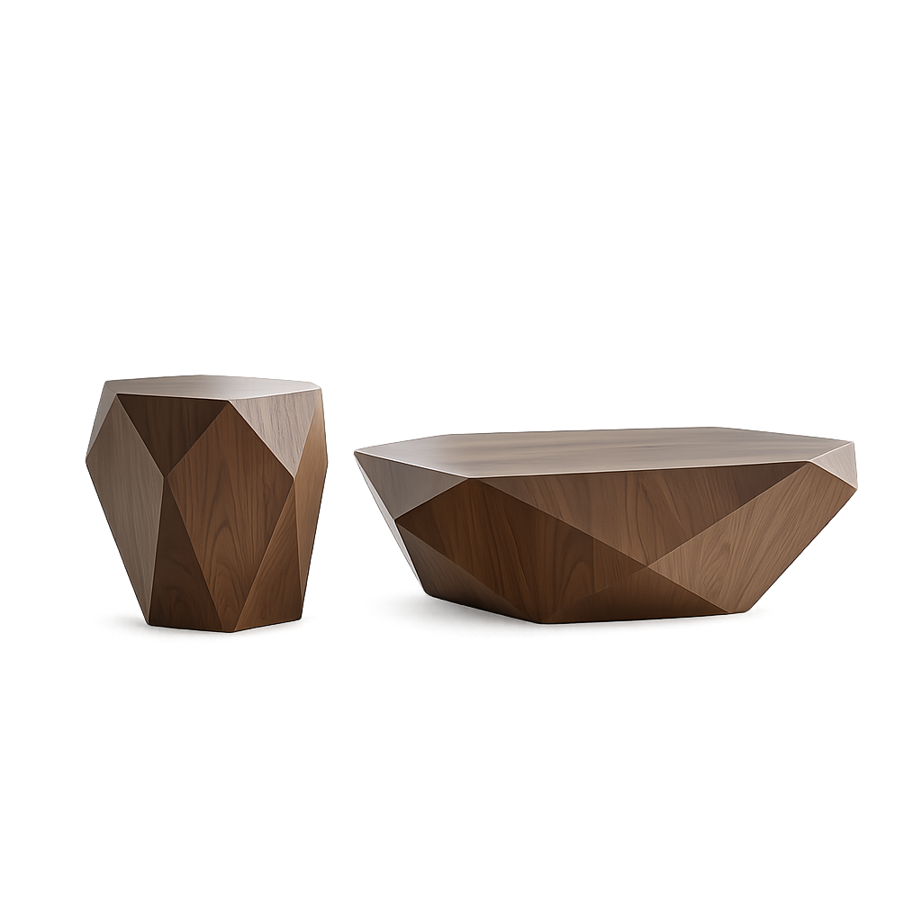 סט שולחנות דגם טריי מביאים לחלל לוק מודרני ומיוחד, כזה שמרגיש כמו פריט עיצוב לא פחות משולחן שימושי. העיצוב הגיאומטרי שלהם נותן מראה מעניין מכל זווית, והפורניר בדוגמת פישבון בצבע אגוז אמריקאי מוסיף תחושת חמימות וסטייל טבעי לבית. השולחנות בנויים מ-MDF חזק ועמיד שמחופה בפורניר עץ אמיתי, כך שהם גם יציבים וגם נשמרים יפה לאורך זמן.