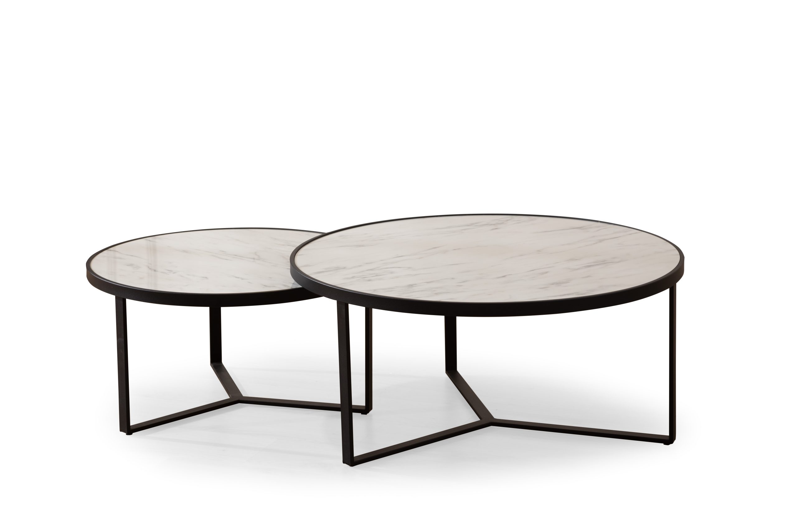 סט שולחנות לסלון דמוי שיש לבן מבריק דגם טיאגו