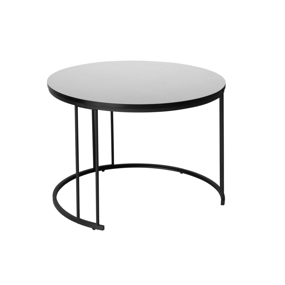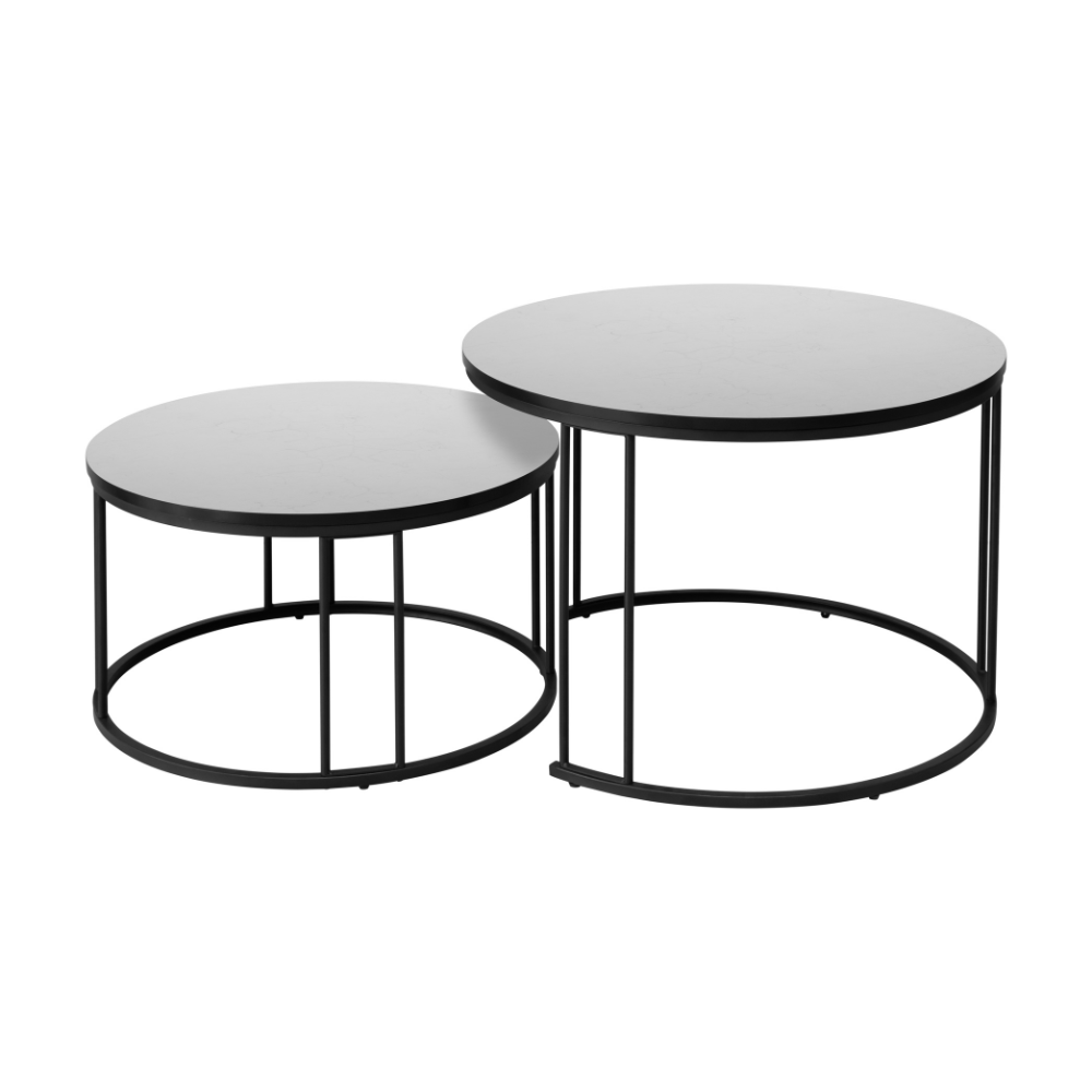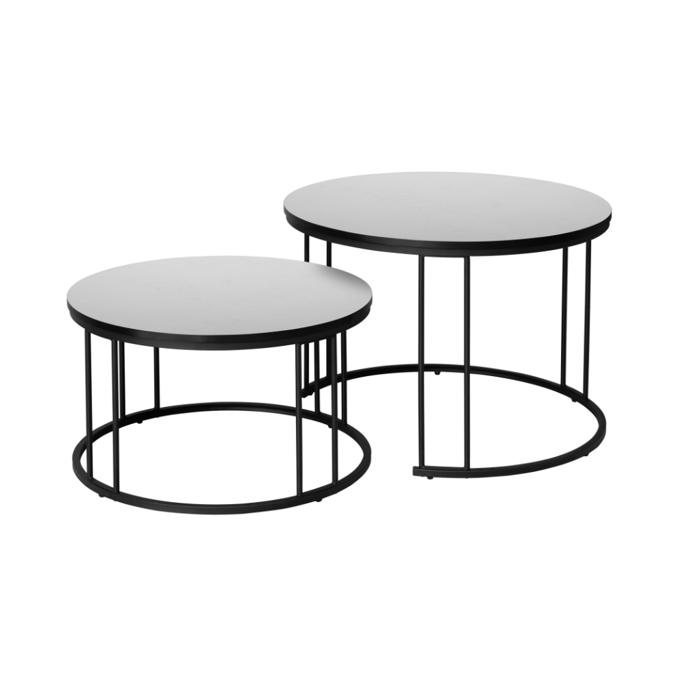הסט כולל שני שולחנות בקטרים שונים, כאשר השולחן הקטן נכנס מתחת לגדול – פתרון חכם שחוסך מקום ומאפשר גמישות מלאה בסידור החלל.