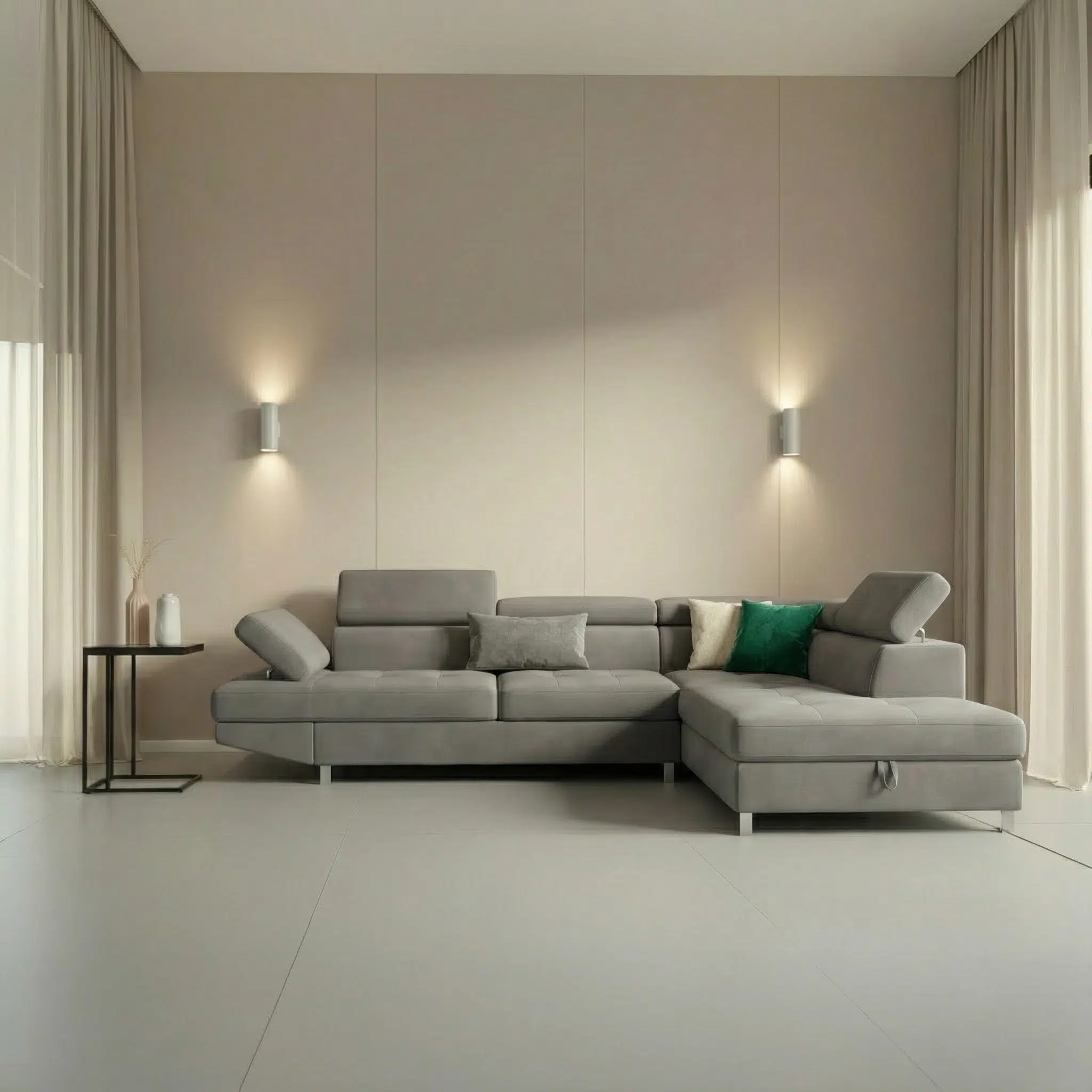 מערכת ישיבה פינתית מפוארת דגם לאוס מעוצבת בסגנון מודרני עכשווי בעלת קווים ישרים ומינימליסטיים.