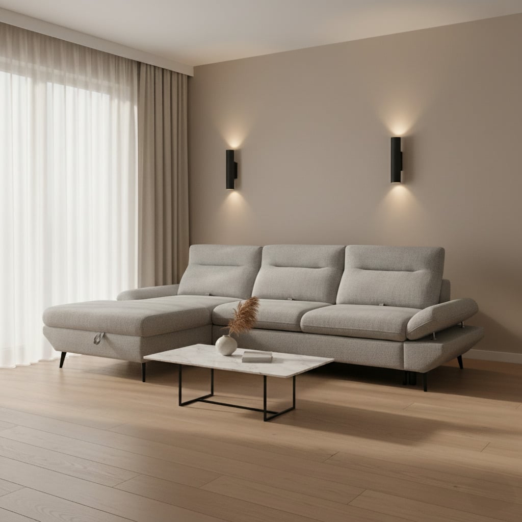הכירו את דגם "סטארה" – ספה פינתית נפתחת למיטה, המעוצבת להכניס אווירה נעימה ומזמינה לביתכם. דגם "סטארה" מציע מנגנון רביצה ייחודי המאפשר לכם להזיז את משענות הראש לאחור ולהרחיב את המושב, כך שתוכלו ליהנות מנוחות מקסימלית וחוויית ישיבה מפנקת במיוחד. הספה עומדת על רגליים גבוהות, כך שהניקיון מתחתיה הופך לפשוט וקל. הבד האיכותי, הנעים למגע והקל לניקוי, מבטיח תחזוקה נוחה ומראה רענן לאורך זמן. דגם "סטארה" – הנאה מושלמת מעיצוב מרהיב, נוחות ופרקטיות לכל המשפחה.