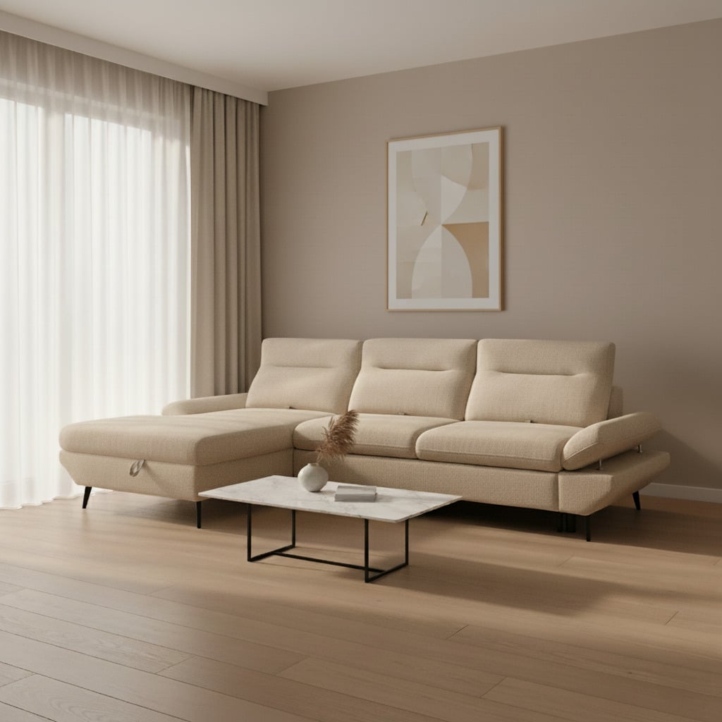 הכירו את דגם "סטארה" – ספה פינתית נפתחת למיטה, המעוצבת להכניס אווירה נעימה ומזמינה לביתכם. דגם "סטארה" מציע מנגנון רביצה ייחודי המאפשר לכם להזיז את משענות הראש לאחור ולהרחיב את המושב, כך שתוכלו ליהנות מנוחות מקסימלית וחוויית ישיבה מפנקת במיוחד. הספה עומדת על רגליים גבוהות, כך שהניקיון מתחתיה הופך לפשוט וקל. הבד האיכותי, הנעים למגע והקל לניקוי, מבטיח תחזוקה נוחה ומראה רענן לאורך זמן. דגם "סטארה" – הנאה מושלמת מעיצוב מרהיב, נוחות ופרקטיות לכל המשפחה.