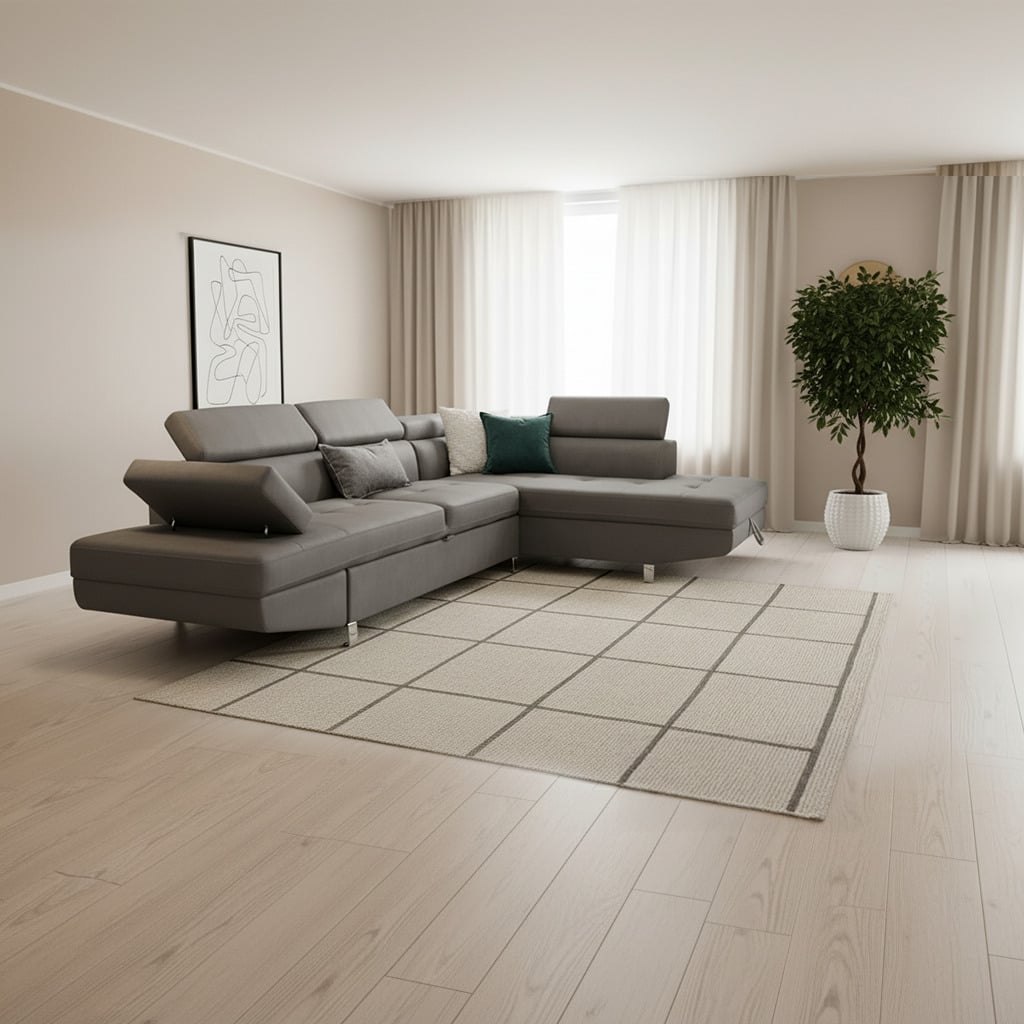מערכת ישיבה פינתית מפוארת דגם סיאם מעוצבת בסגנון מודרני עכשווי בעלת קווים ישרים ומינימליסטיים.