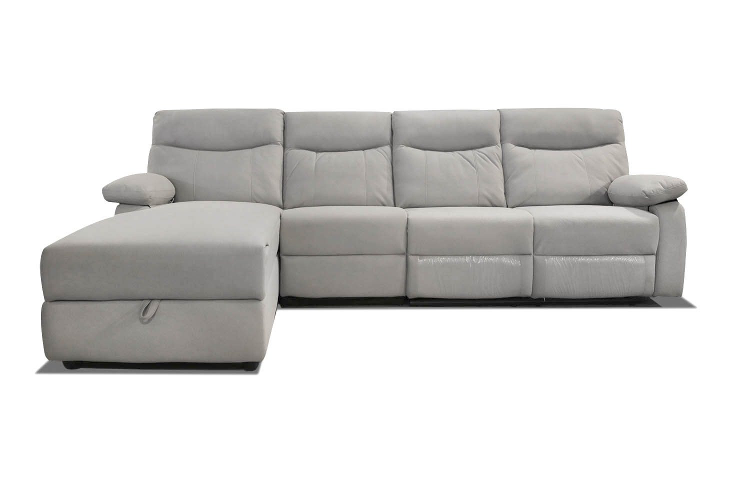 ספה פינתית עם ריקליינרים וארגז מצעים דגם אפולוסה בבד אופוויט