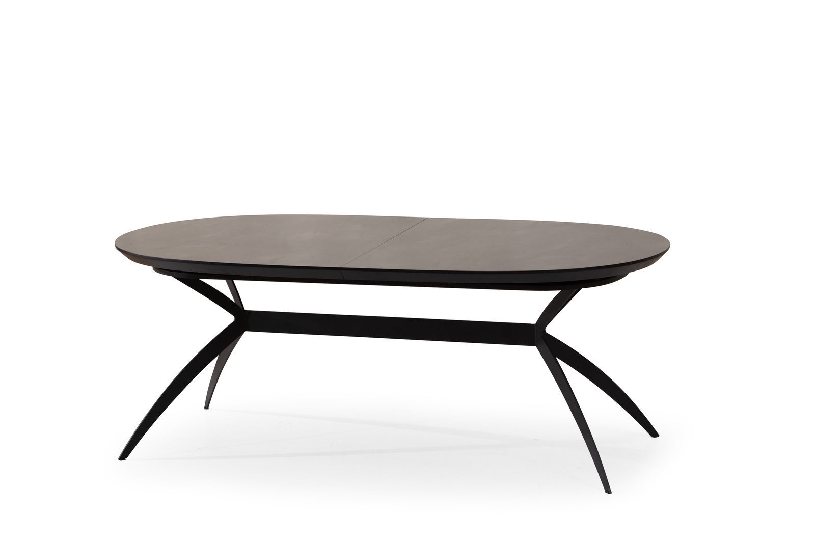 פינת אוכל אובלית ייחודית למראה דגם סורינו בגימור דמוי בטון בעל צללית דופן נמוכה לאחסנת ההארכות הפנימיות עשיר וחם במראהו ומעוצב עד הפרטים הקטנים ביותר .