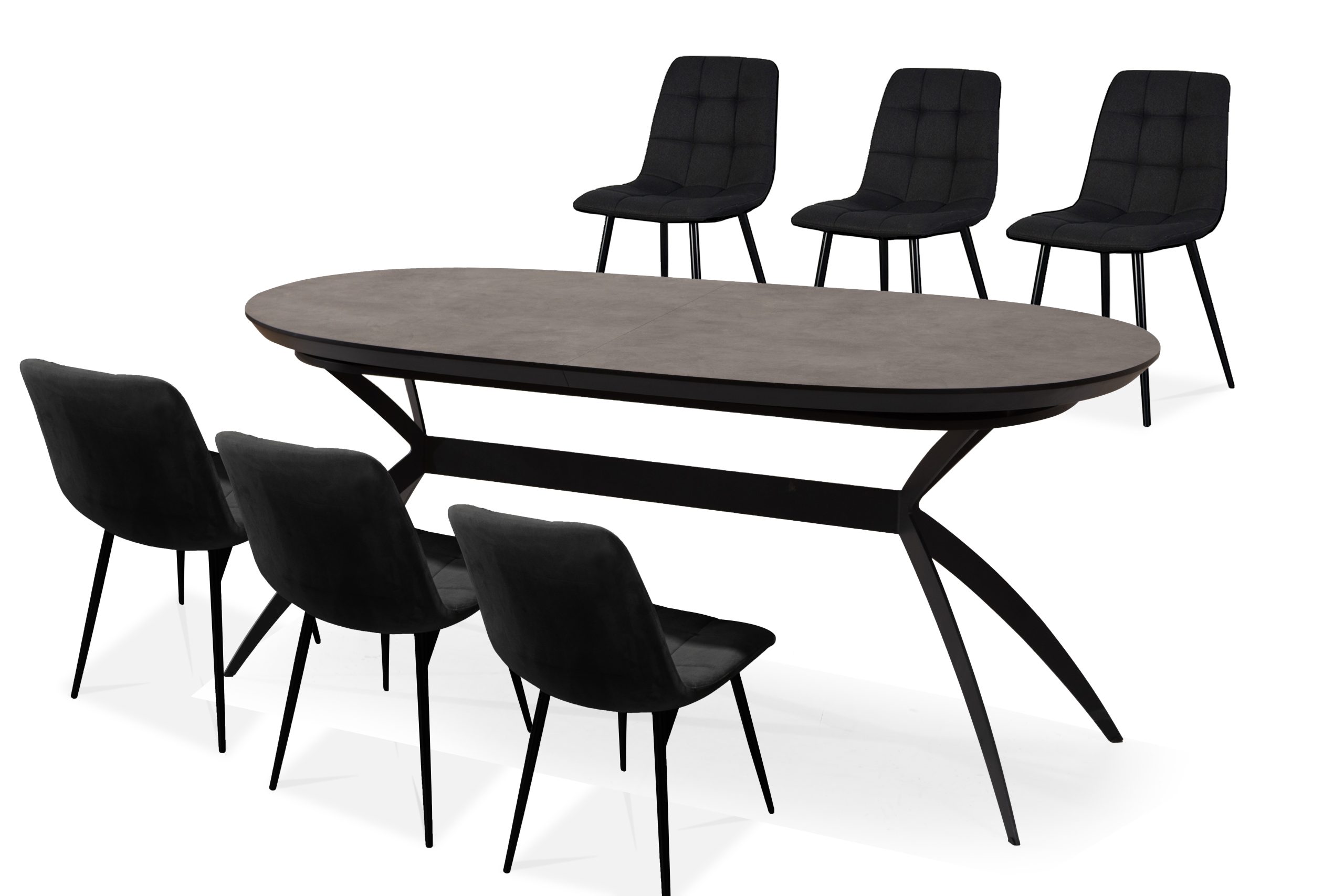 פינת אוכל אובלית דגם סורינו דמוי בטון + 6 כסאות – 14 סועדים