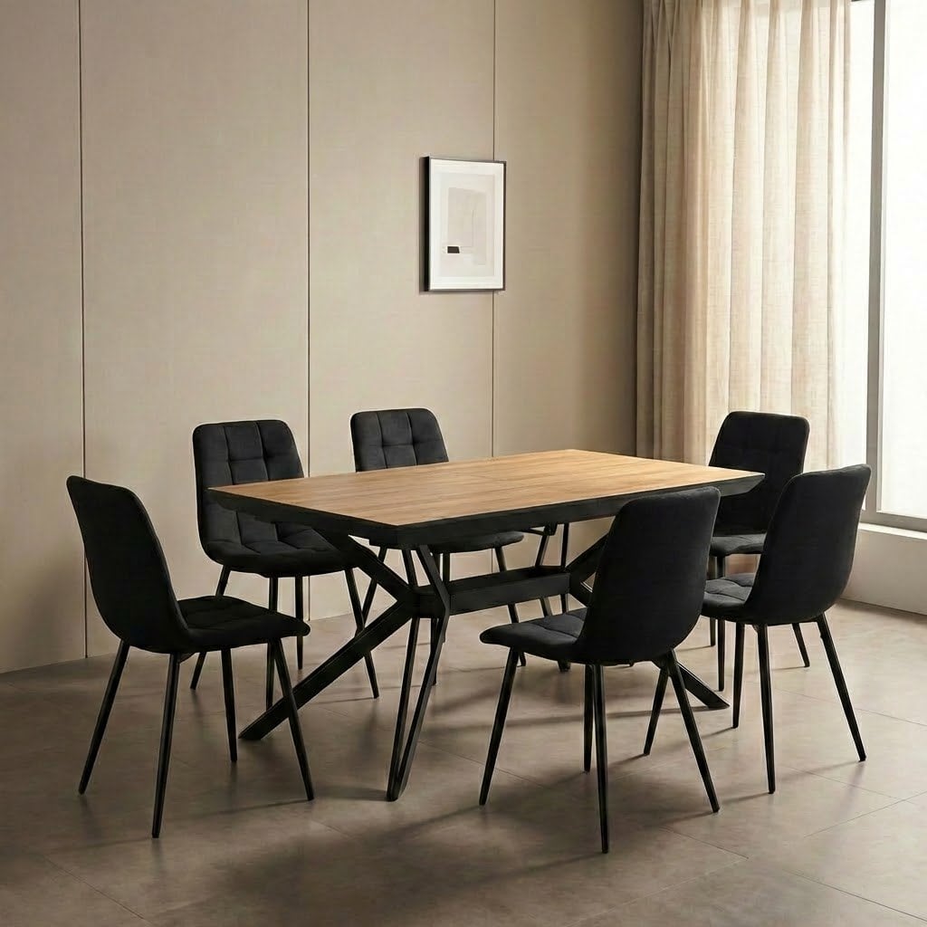 פינת אוכל דגם ארקו דמוי עץ טבעי + 6 כסאות – 14 סועדים