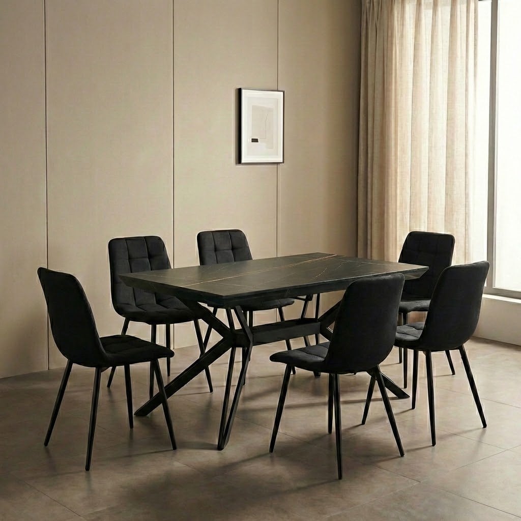 פינת אוכל דגם ארקו דמוי שיש שחור + 6 כסאות – 14 סועדים