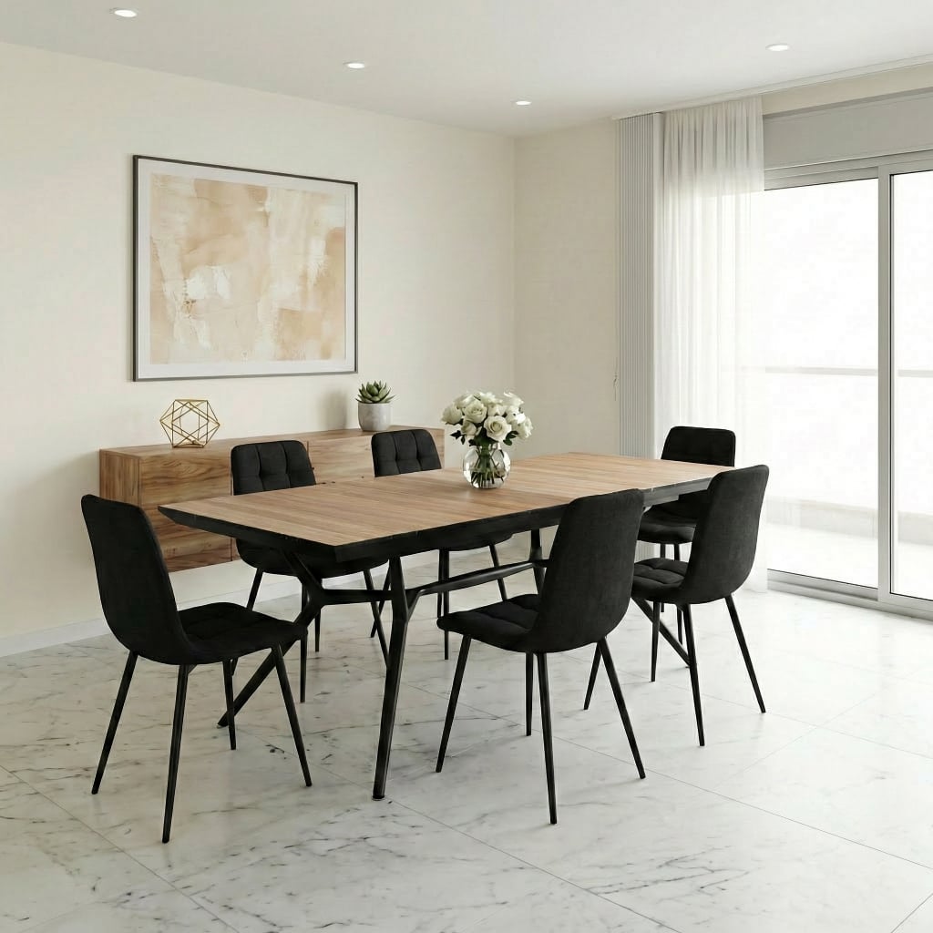 שולחן האוכל ורנו הוא פתרון מושלם לאירוח גדול, המשלב עיצוב מודרני מרשים עם פונקציונליות מתקדמת. השולחן עשוי MDF בציפוי למינציה איכותית, עמידה ל־חום ושריטות, ומתאימה לשימוש יומיומי אינטנסיבי. אורכו 2.00 מ’ וכולל 4 הארכות של 50 ס"מ כל אחת, כך שניתן להאריך אותו עד לאורך מרשים של 4.00 מ’ – אידיאלי לאירוח משפחתי רחב ולאירועים מיוחדים.