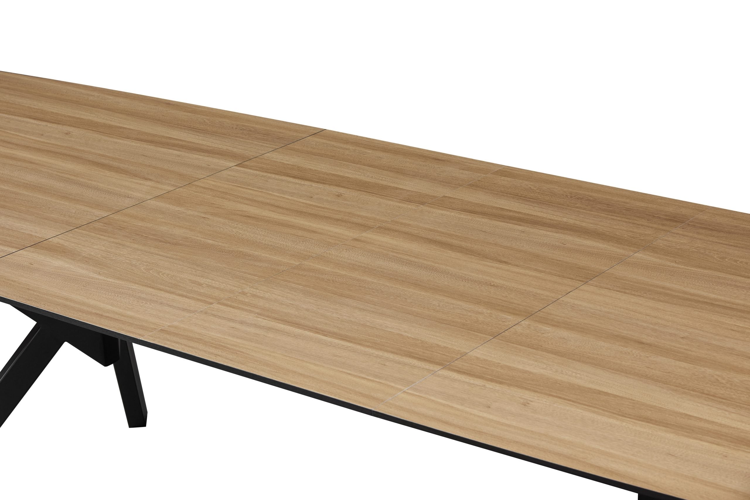השולחן באורך 2.08 מ' ובעל 2 הארכות של 45 ס"מ נוספים ואורך מלא של 2.98 מ'.