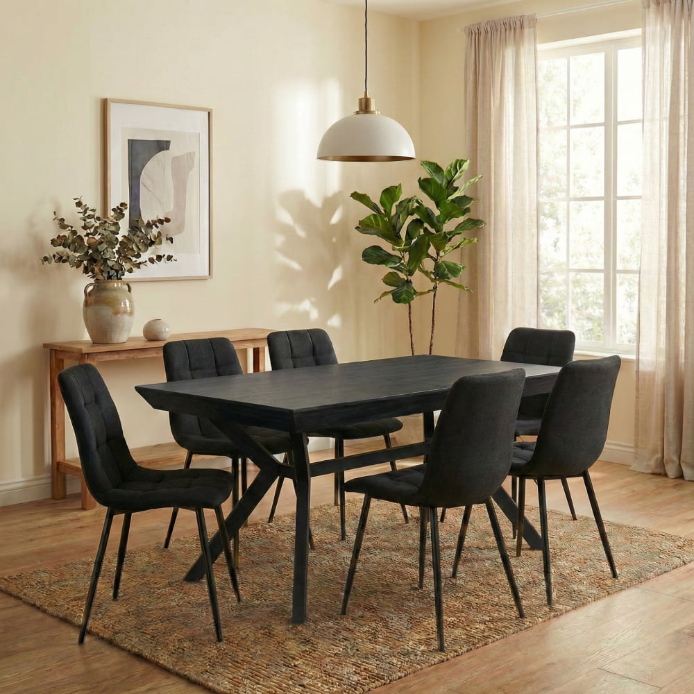 פינת אוכל מלבנית דמוי בטון שחור דגם רוגן בגימור המשמר נראות רגילה למראה ומתאימה לכול בית. עשיר וחם במראהו ומעוצב עד הפרטים הקטנים ביותר .