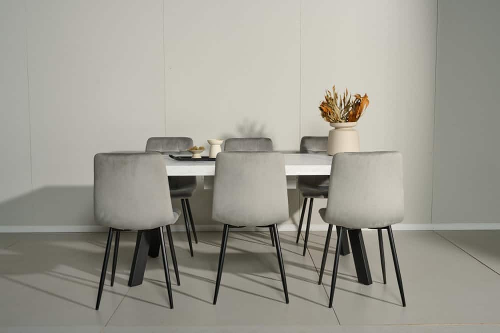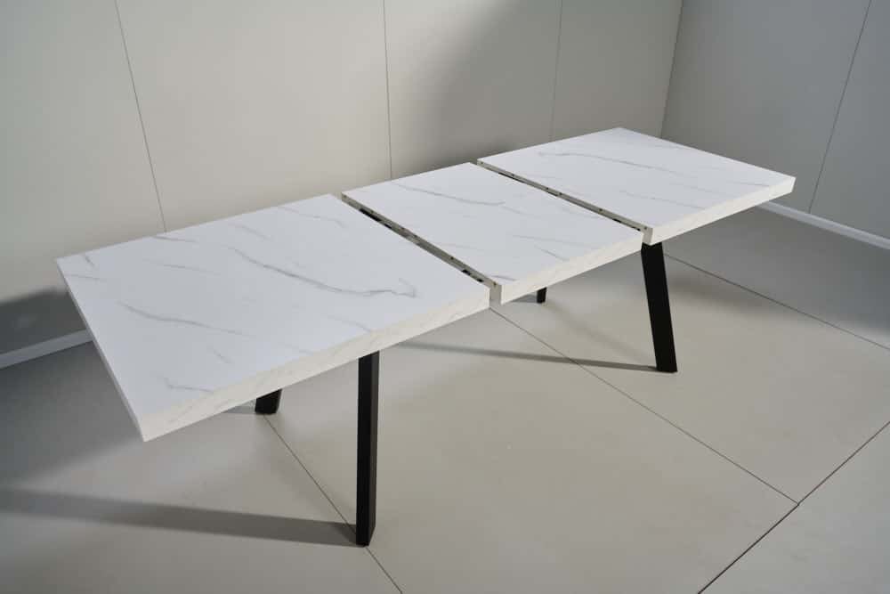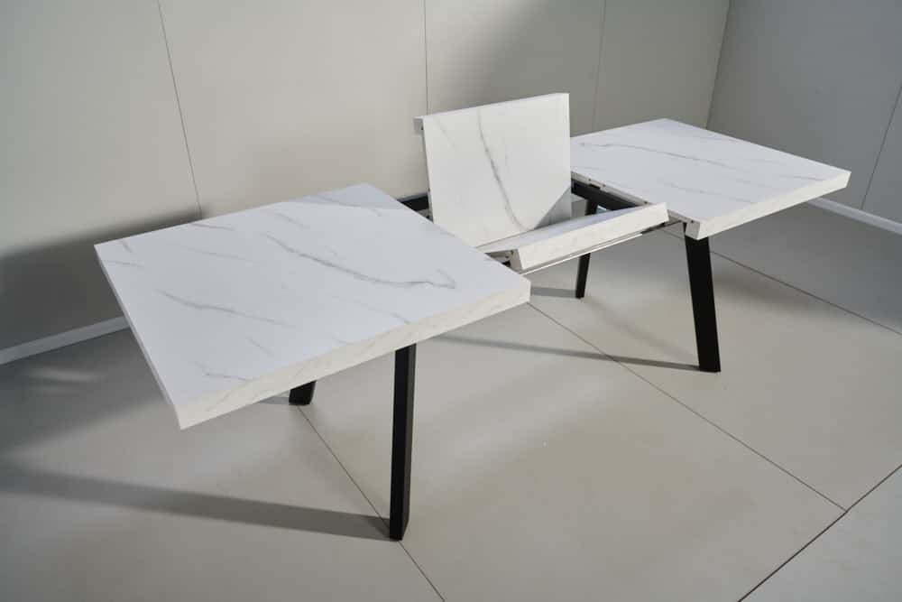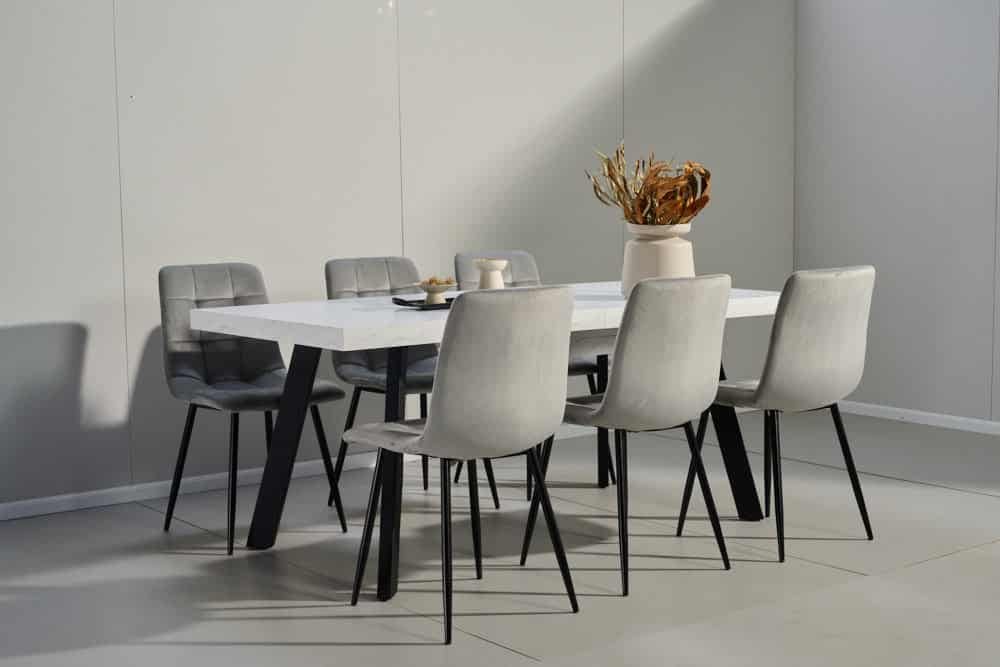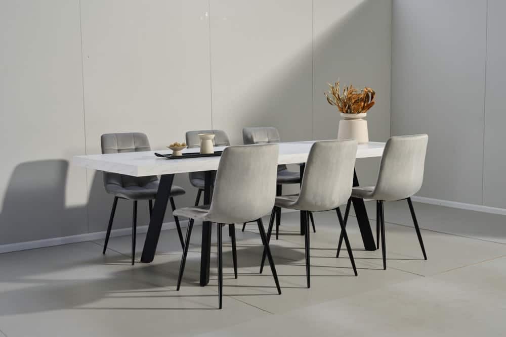 פינת אוכל מלבנית דמוי שיש לבן דגם אבניו + 6 כסאות – 10 סועדים
