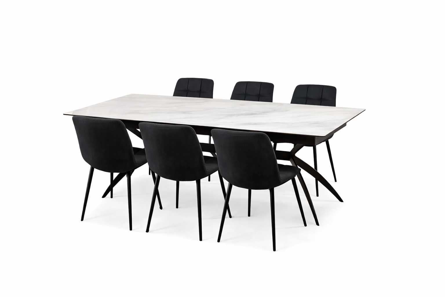 פינת אוכל מלבנית שיש לבן מבריק דגם קונקורד + 6 כסאות – 14 סועדים
