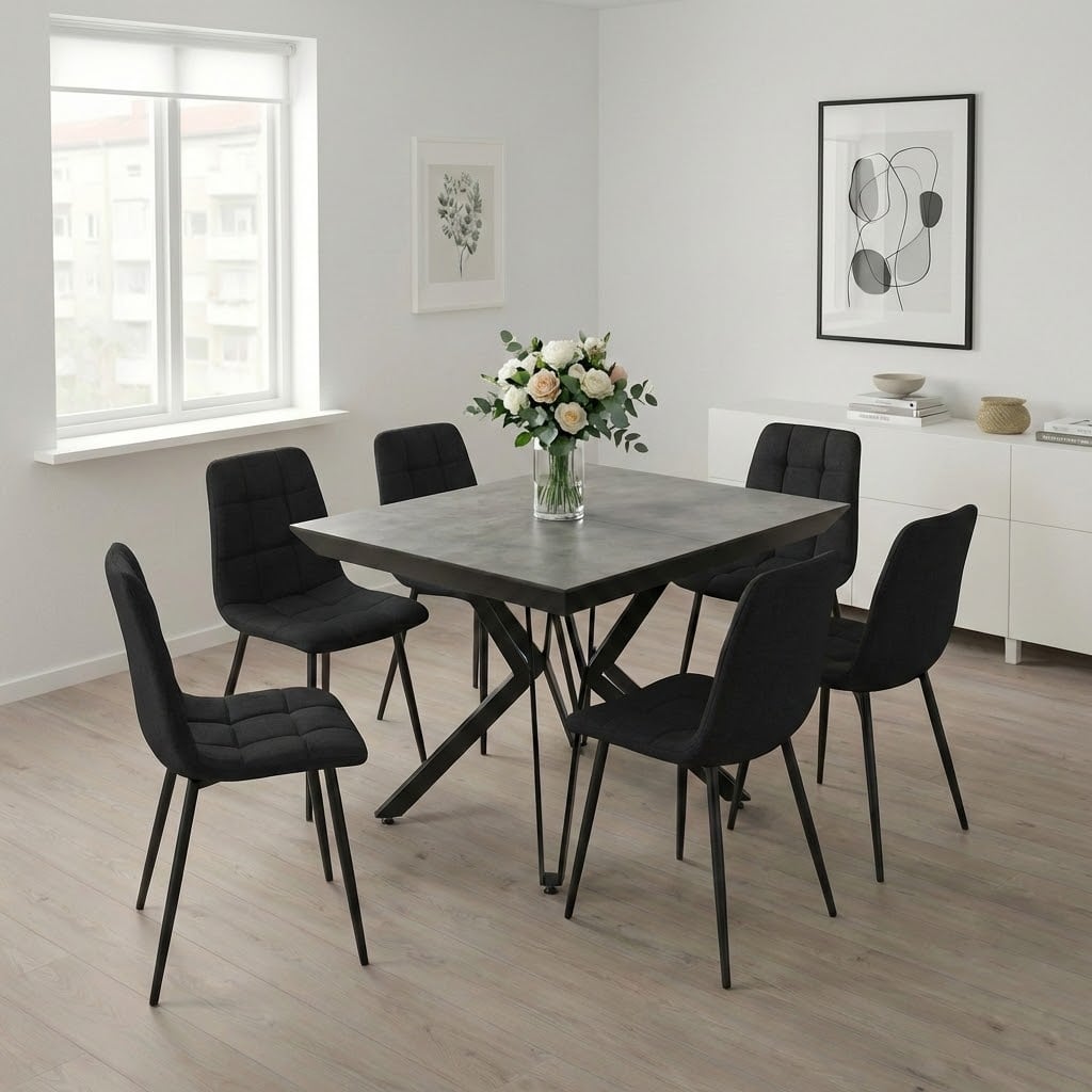פינת אוכל מרובעת נפתחת דגם אקובה דמוי בטון + 6 כסאות – 12 סועדים