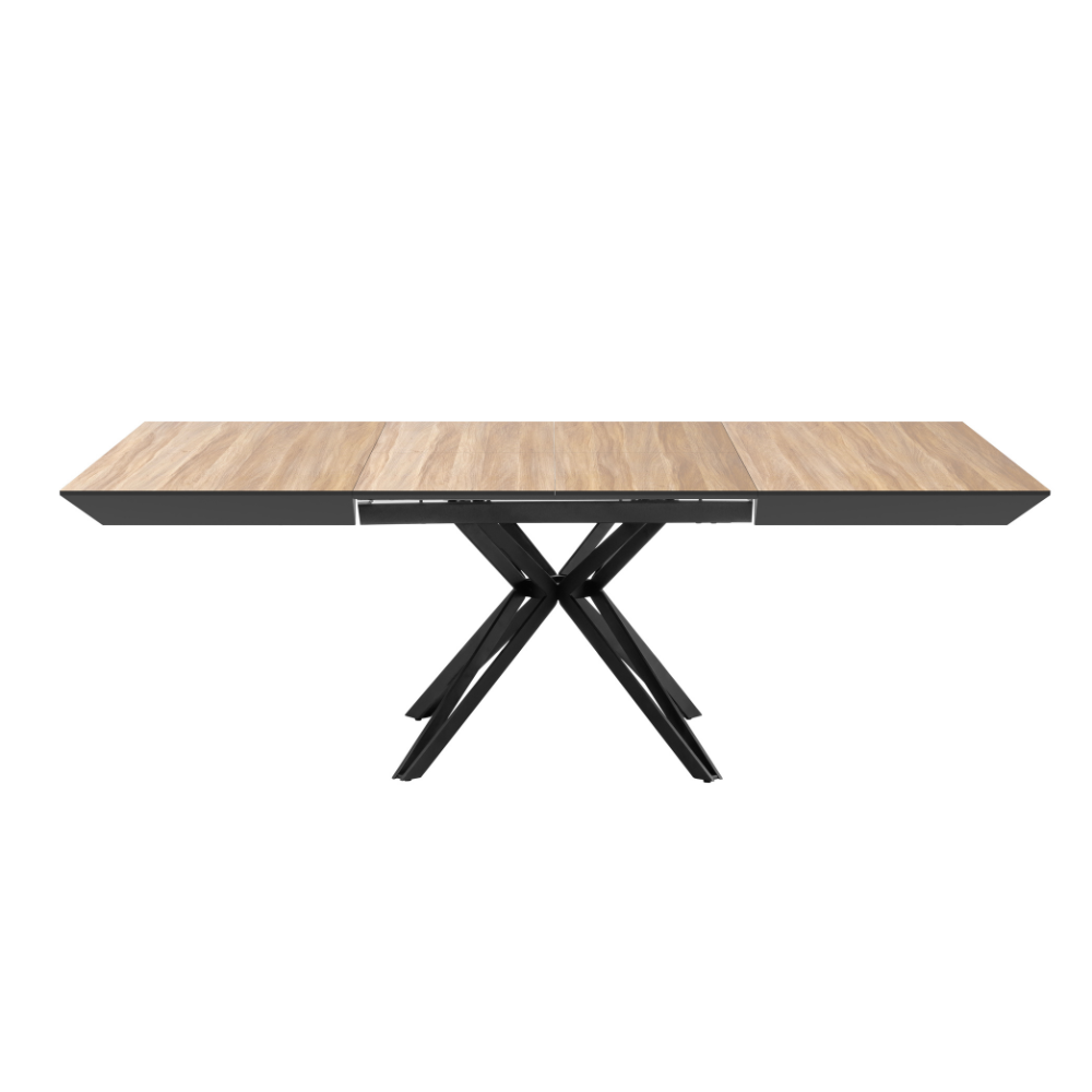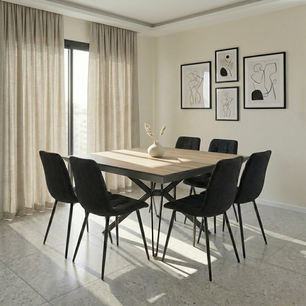 פינת אוכל דגם טיבו משלבת שולחן בעיצוב מודרני נקי עם פונקציונליות חכמה המותאמת לבית הישראלי. שולחן מרובע במידה 1.30 מ’ במצב סגור, הנפתח באמצעות 2 הארכות נוחות למצב מרווח של 2.20 מ’ – אידאלי לאירוח משפחתי ולארוחות חג. פלטת השולחן עשויה MDF איכותי בציפוי למינציה עמיד במיוחד נגד שריטות וחום, לשימוש יומיומי ללא חשש. רגלי מתכת אל-חלד בצבע שחור בעיצוב דינמי מעניקות יציבות מקסימלית ומראה יוקרתי, ובתחתית הרגליים פלסטיקים ייעודיים למניעת שחיקה והגנה על הרצפה. שילוב מושלם של נוכחות עיצובית, עמידות ונוחות פתיחה – טיבו הוא הבחירה הנכונה לפינת אוכל מרשימה ופרקטית כאחד.
