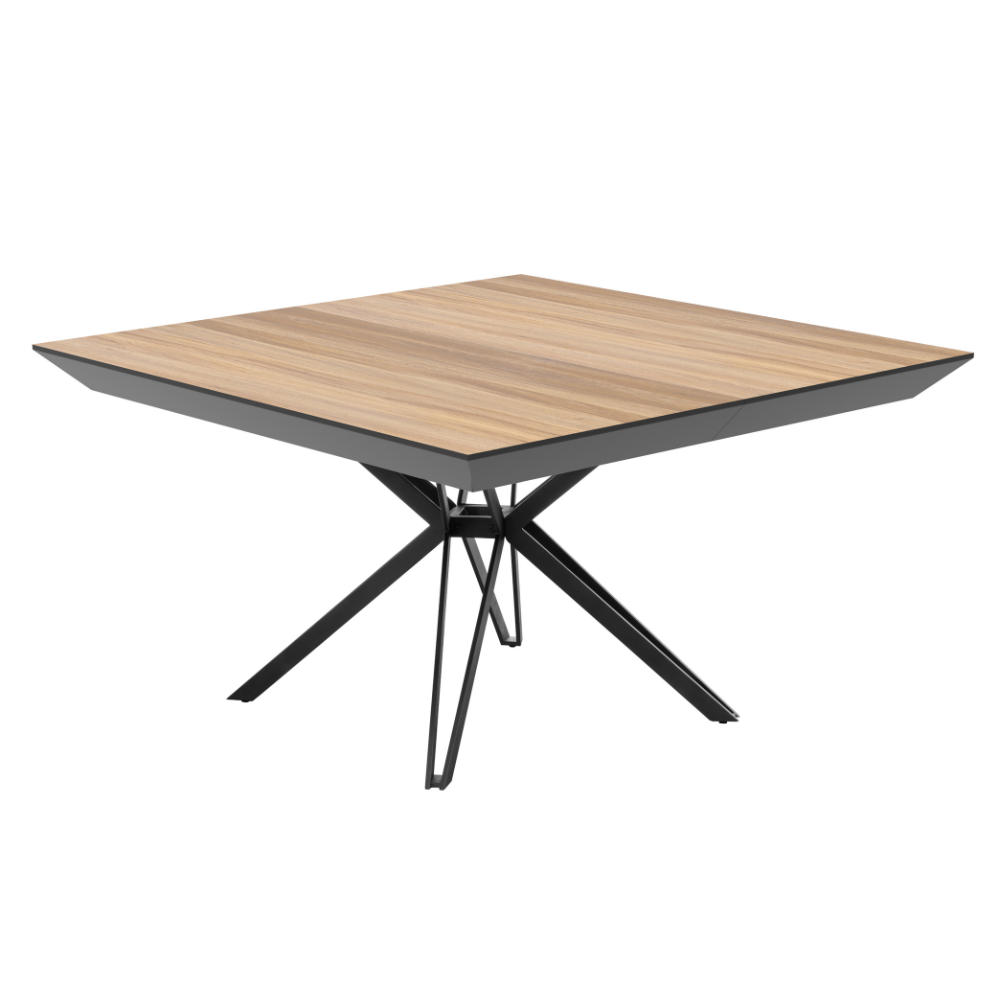 פינת אוכל מרובעת נפתחת דגם טיבו דמוי עץ טבעי + 6 כסאות – 12 סועדים
