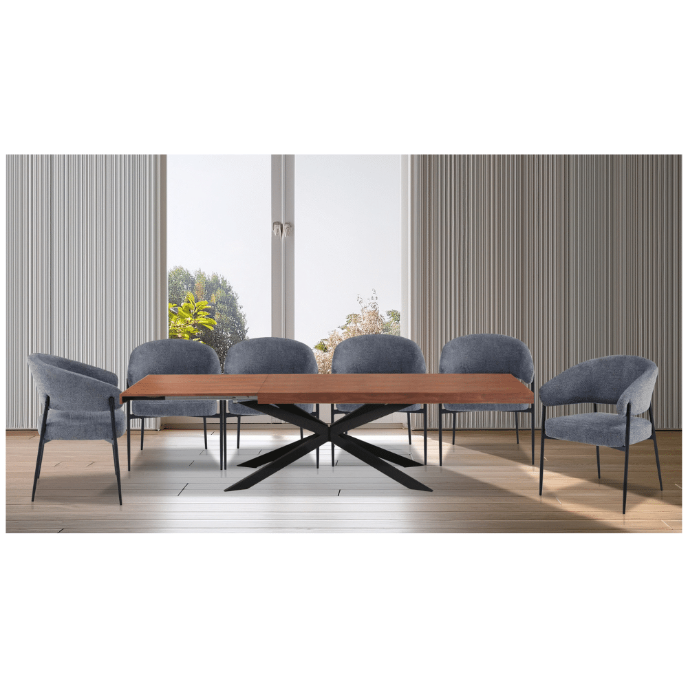 פינת אוכל נפתחת אגוז אמריקאי דגם אסטריד + 6 כסאות