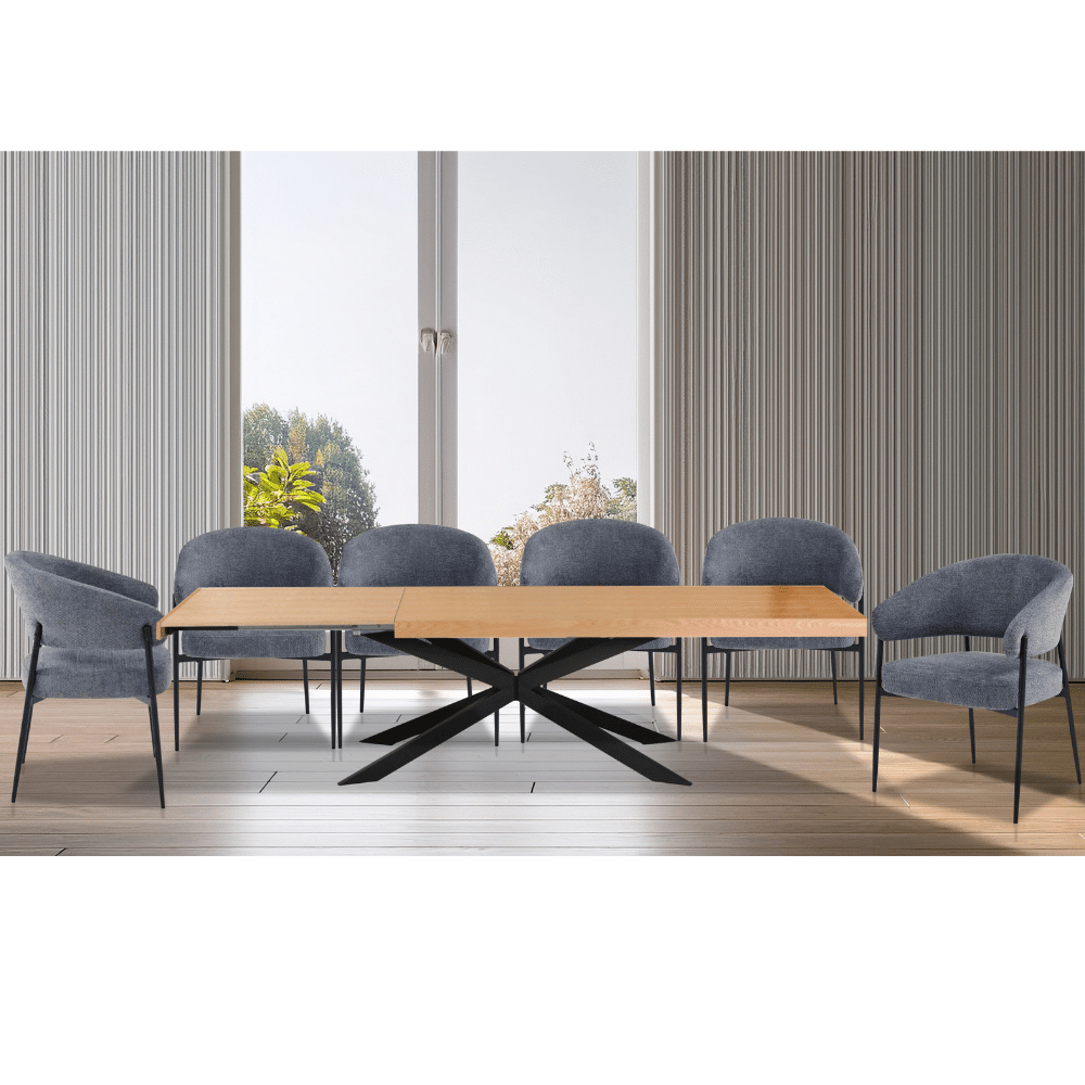 פינת אוכל נפתחת עץ טבעי דגם אסטריד + 6 כסאות