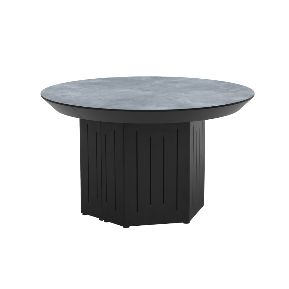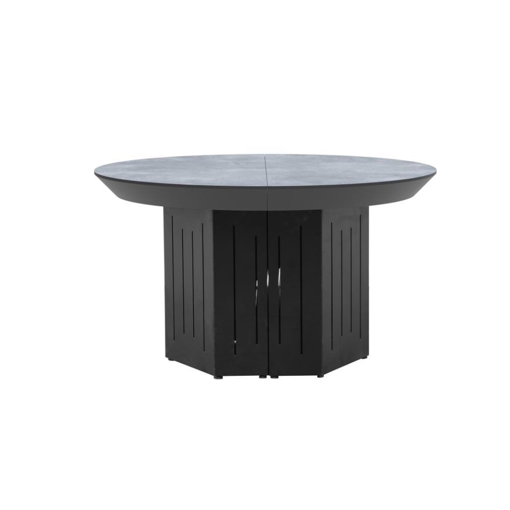 פינת אוכל עגולה נפתחת דגם טרוסה דמוי בטון + 6 כסאות – 16 סועדים