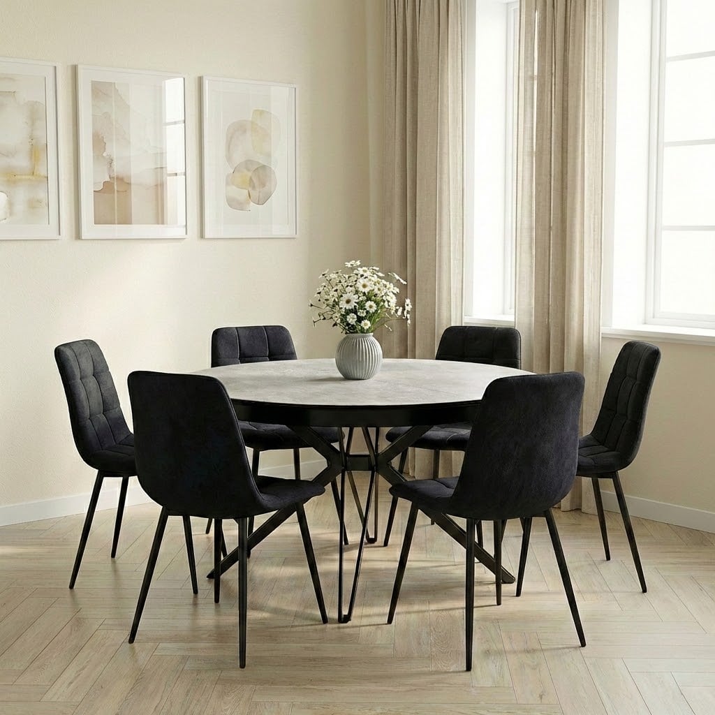 פינת אוכל עגולה נפתחת דגם קסטלו דמוי אבן אפור + 6 כסאות – 10 סועדים