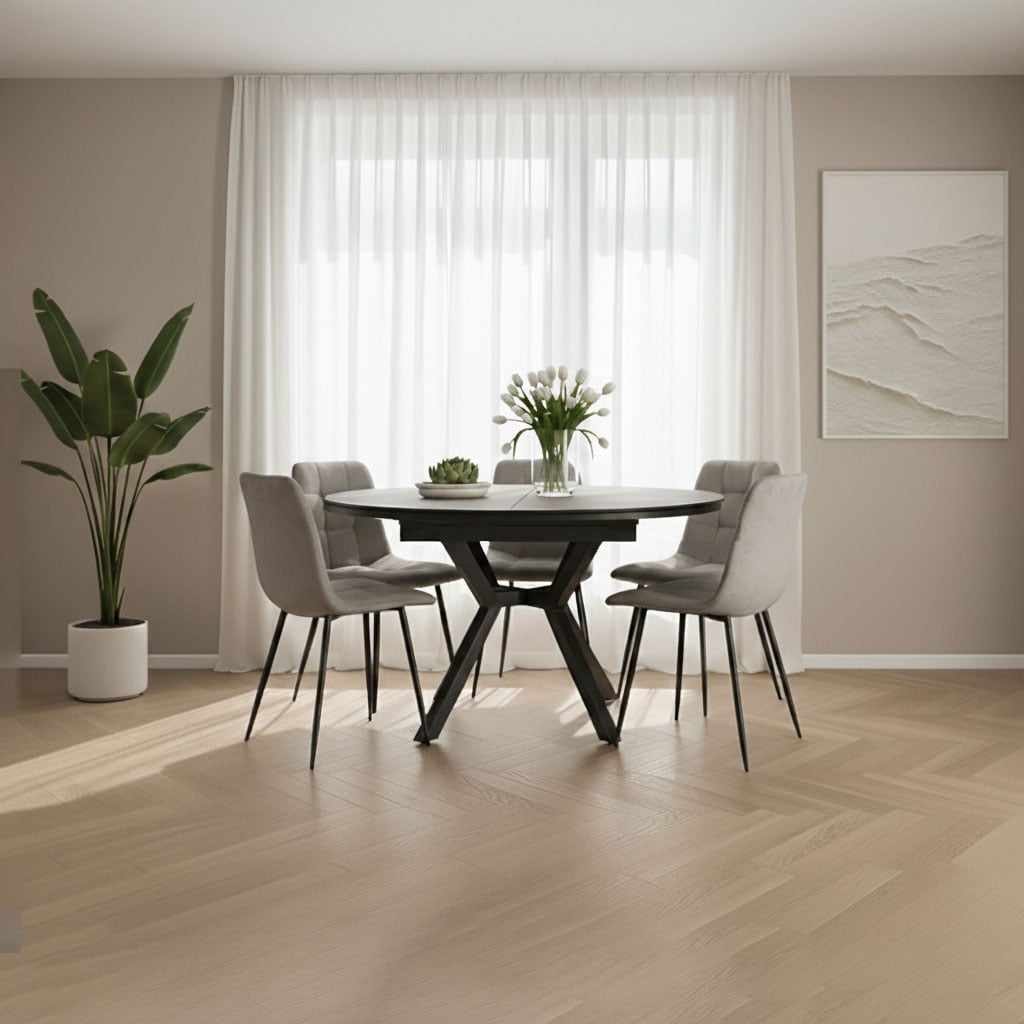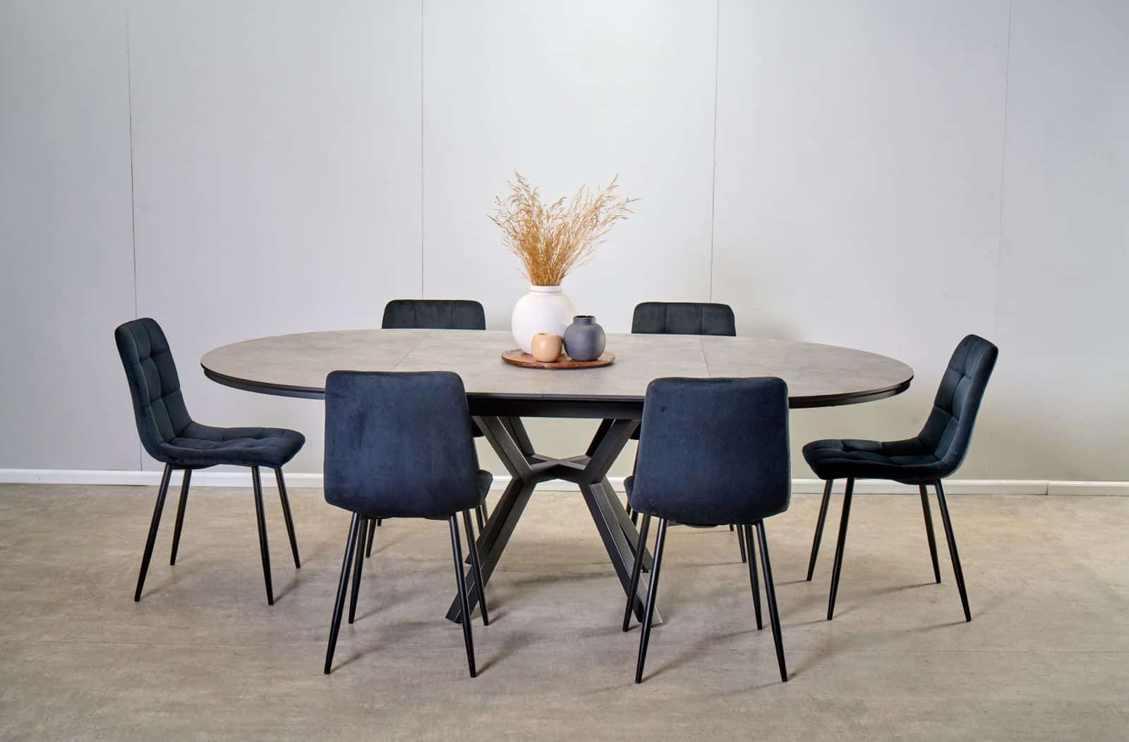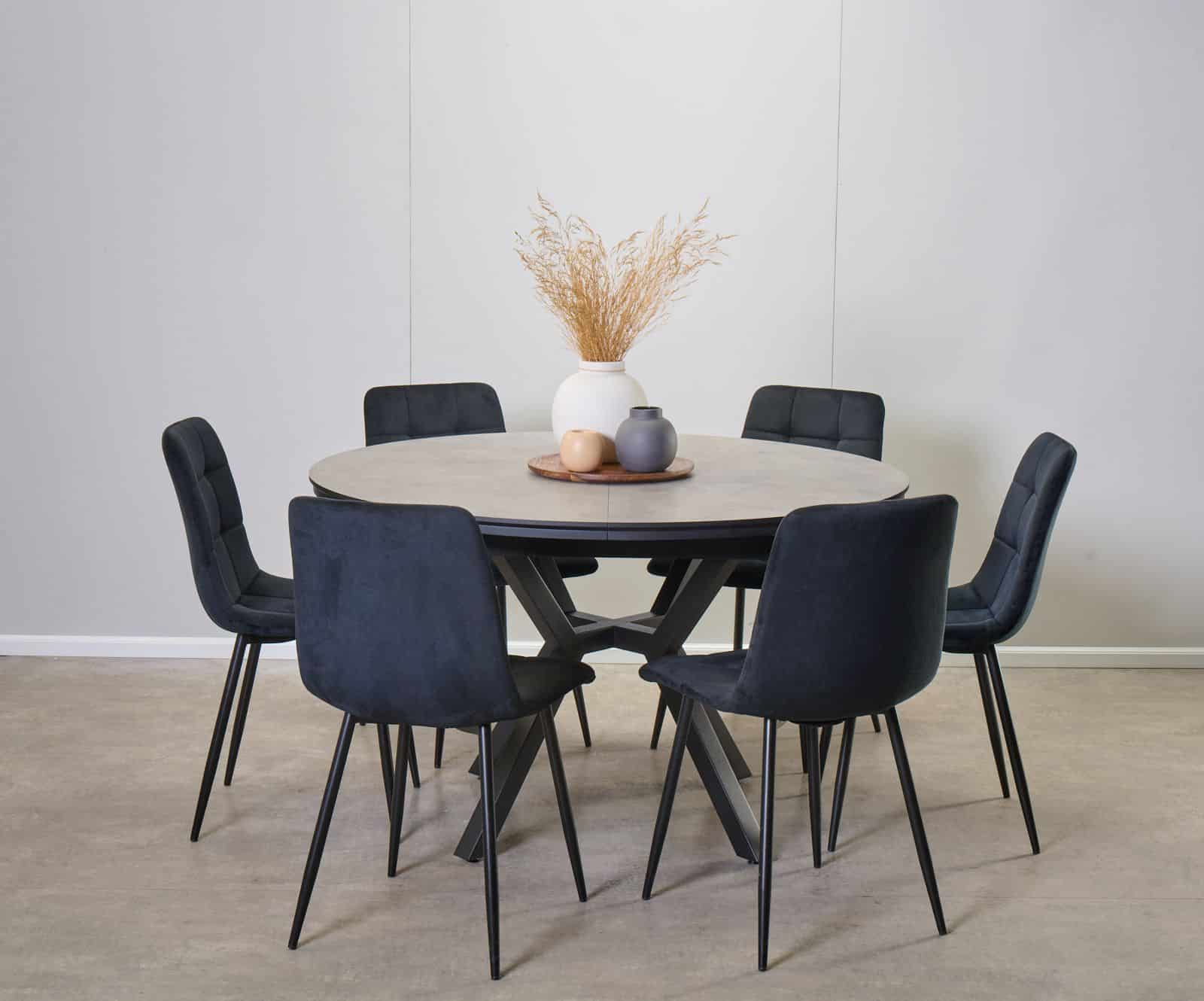 פינת אוכל עגולה נפתחת דמוי בטון דגם לונגו + 6 כסאות – 10 סועדים