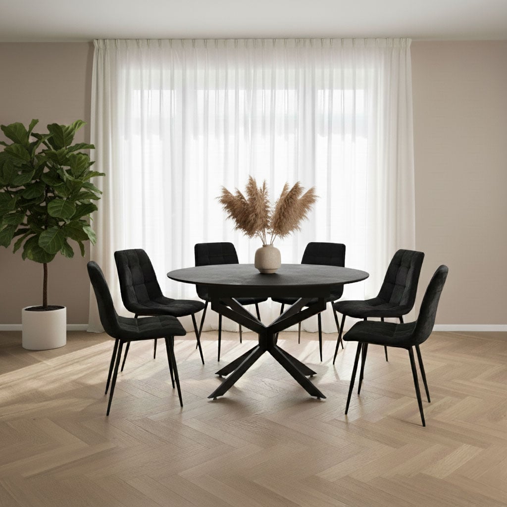 פינת אוכל עגולה נפתחת דמוי שיש אפור דגם לונה + 6 כסאות – 8 סועדים