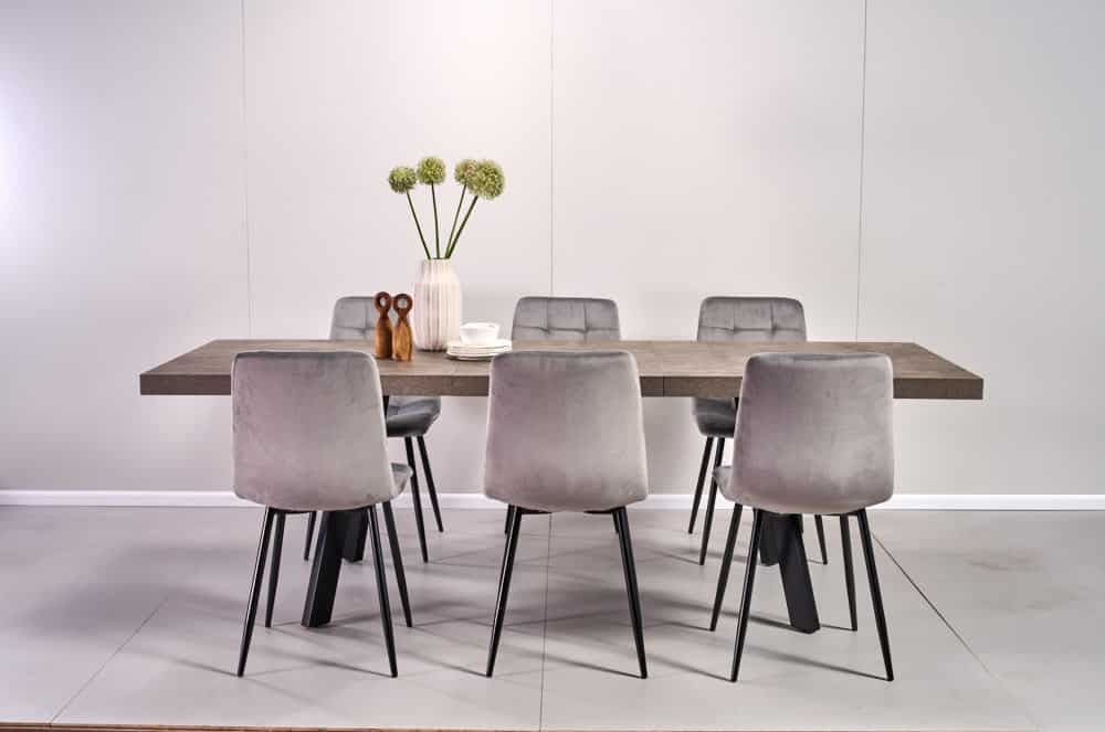 פינת אוכל מלבנית דמוי בטון דגם ספיידר + 6 כסאות – 10 סועדים