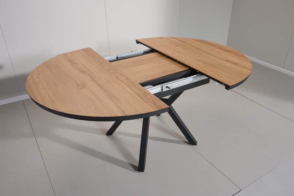 שולחן אוכל עגול נפתח דמוי עץ טבעי דגם אלמוס – 8 סועדים