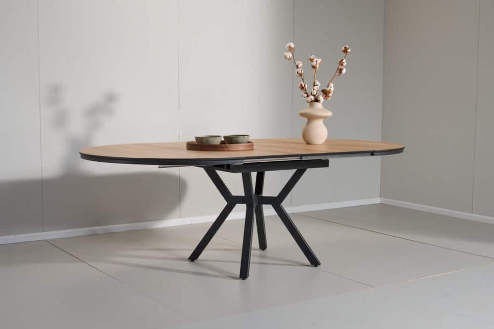 שולחן אוכל עגול נפתח דמוי עץ טבעי דגם לונגו – 10 סועדים