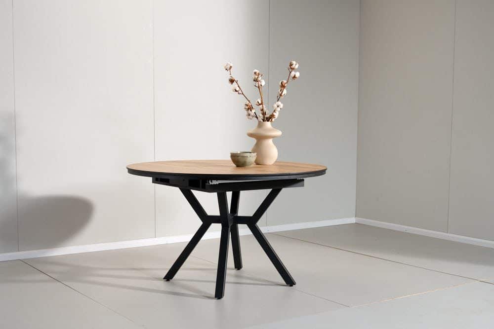 שולחן אוכל עגול נפתח דמוי עץ טבעי דגם רפאלו – 10 סועדים