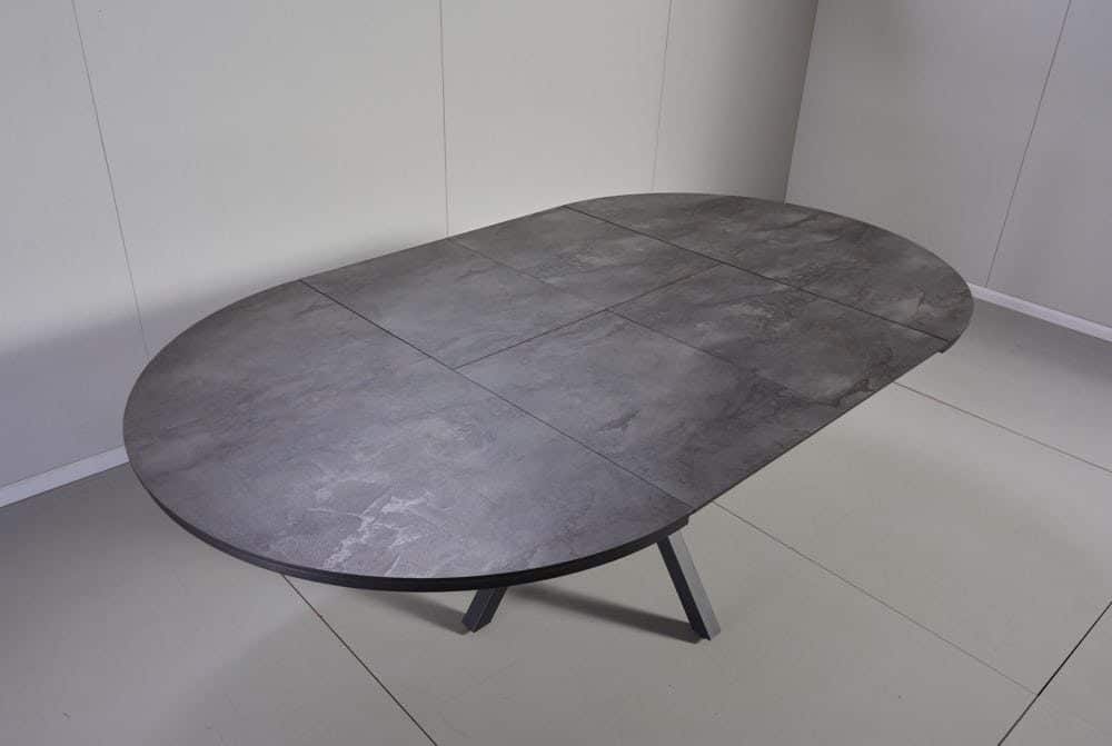 שולחן אוכל עגול נפתח דמוי בטון דגם אלמוס – 8 סועדים