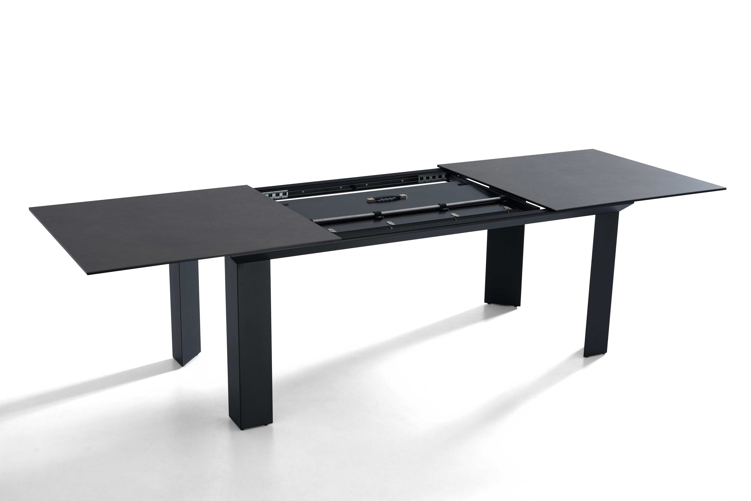 השולחן באורך 2 מ’ ובעל הארכה של מטר נוסף ואורך מלא של 3.00 מ’.