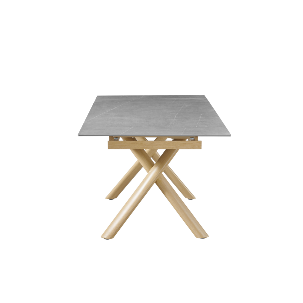 שולחן האוכל ראדו משלב עיצוב מודרני ונוכחות מרשימה עם פתרון אידיאלי לאירוח. פלטת קרמיקה חסינה במיוחד עמידה לחום, שריטות ושחיקה, ומתאימה לשימוש יומיומי אינטנסיבי. השולחן כולל מנגנון פתיחה מהצדדים, נוח וחלק לשימוש, המאפשר להאריך אותו בקלות מאורך 1.60 מ’ ל־2.20 מ’ – מושלם לאירוח משפחתי ולחללים גדולים. רגלי מתכת חזקות בגימור עץ טבעי, עם ציפוי נגד חלודה ו־פלסטיקים למניעת שחיקה והגנה על הרצפה, מעניקות יציבות גבוהה ומראה מודרני, חמים ואלגנטי.