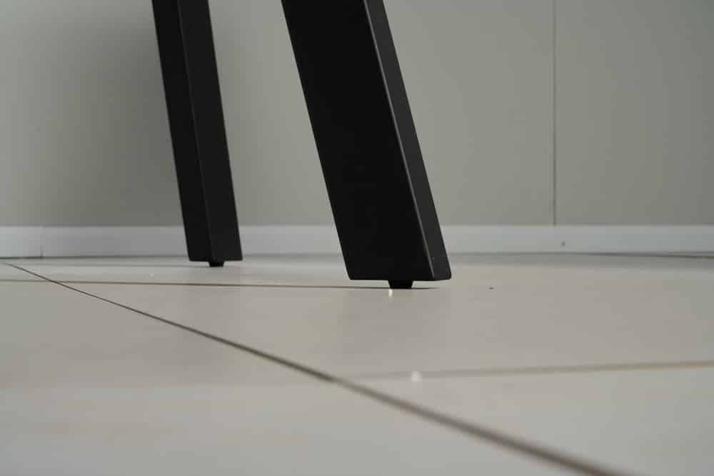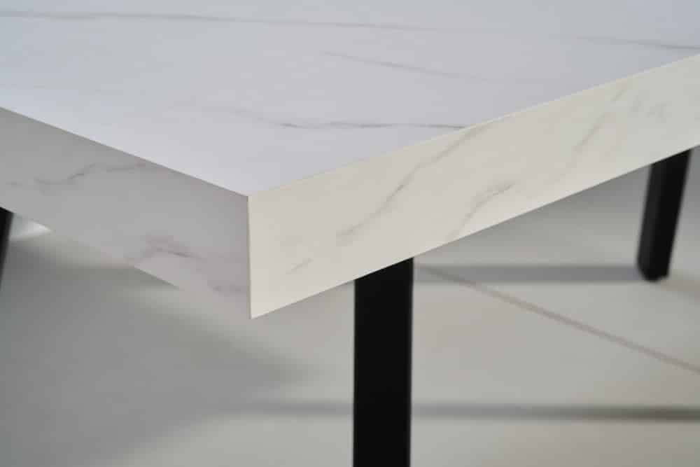 פינת האוכל עשויה MDF בציפוי למינציה דמוי שיש לבן , ורגלי השולחן עשויות מתכת עם שכבת פלסטיק המגינה על הרגליות למניעת שחיקה.
